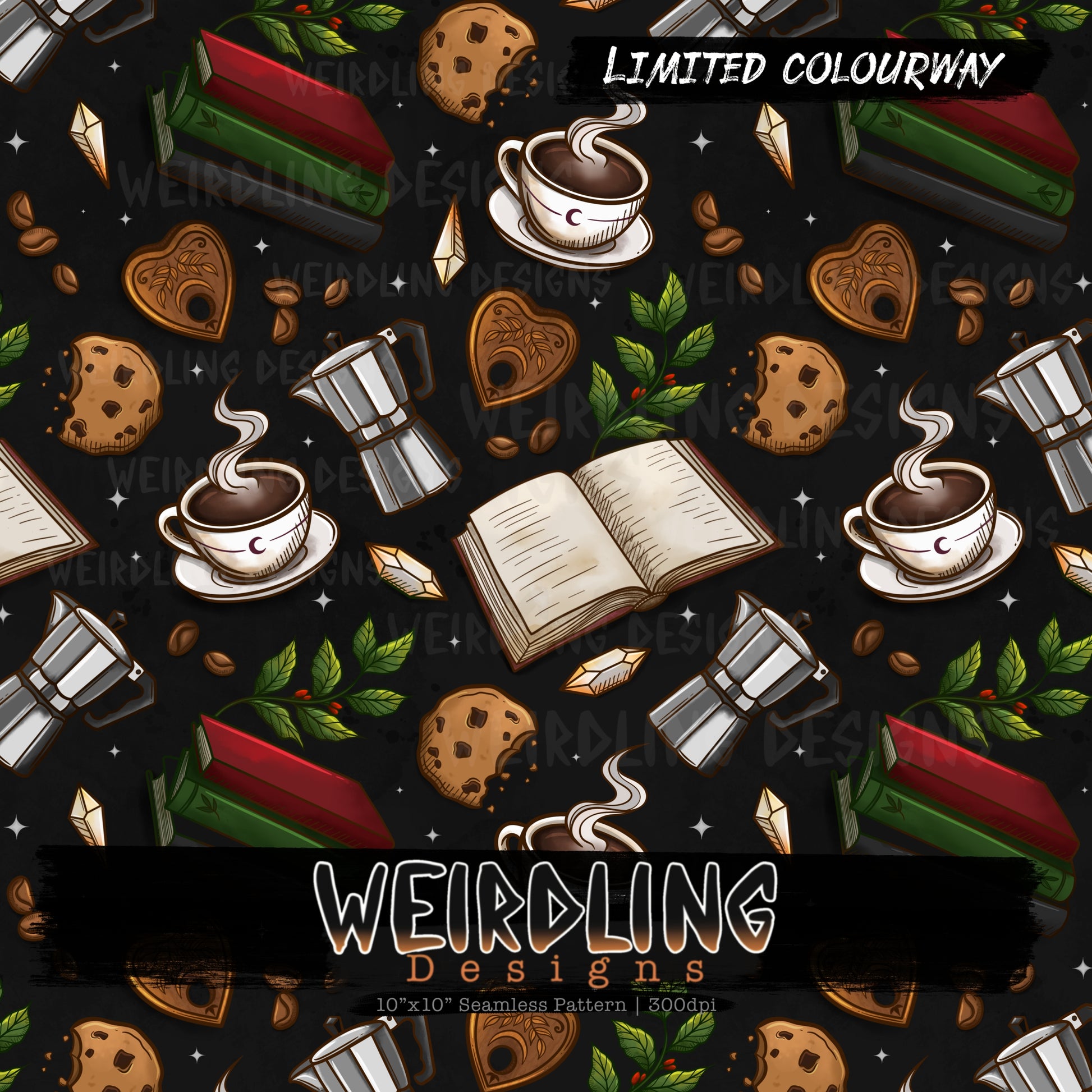 Bookish Brews Coffee - Limited Seamless Design- 4 Colourways