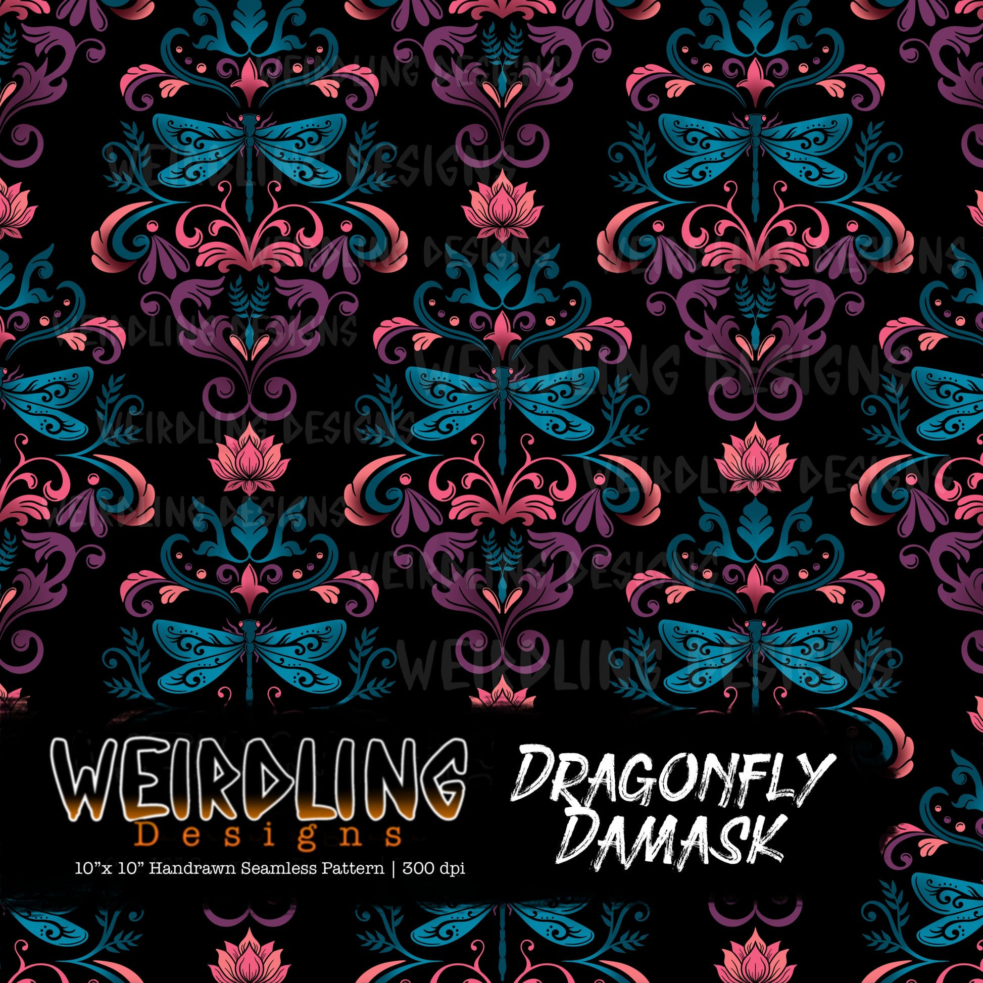 Dragonfly Damask - Limited Seamless Design- 5 Colourways